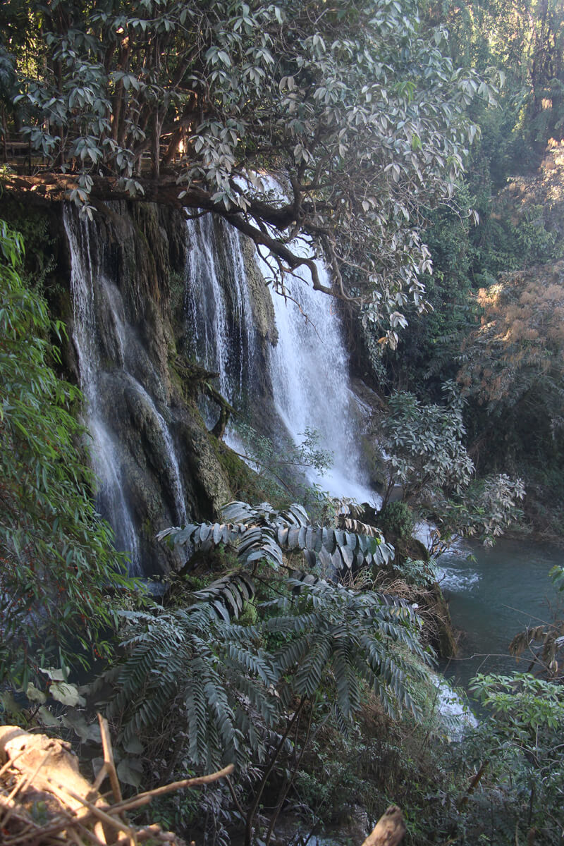 Wer möchte, kann über Treppen (mehr als 500 Stufen), an der Seite des Wasserfalls hinauf laufen. Hier gibt es weitere kleine Becken und einen Ausblick auf einen höher gelegenen Teil des Wasserfalls. Außerdem startet von hier eine Zipline, die ist mit 25USD für laotische Verhältnisse aber eher teuer.